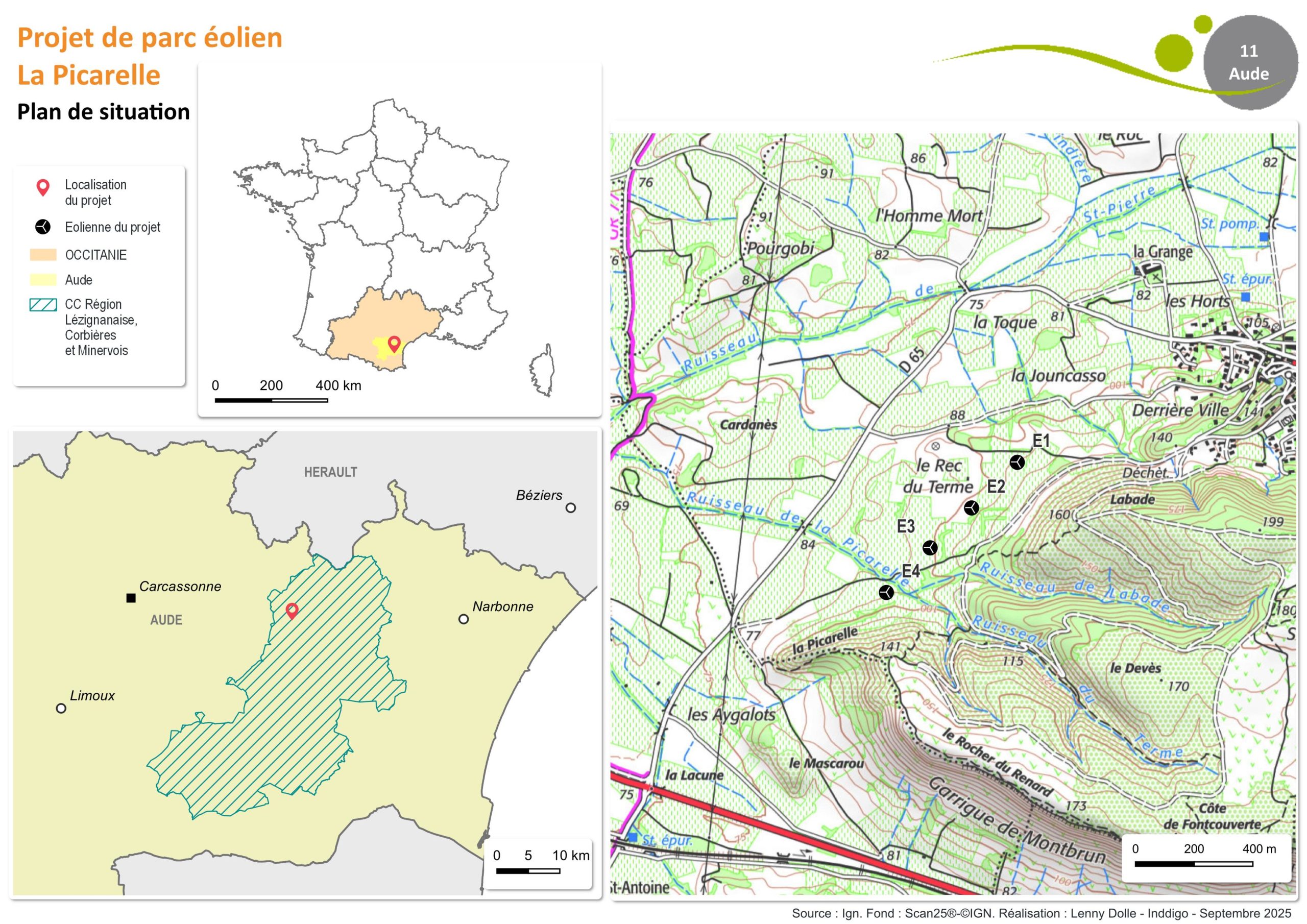 Le projet consiste en l’implantation de 4 éoliennes. Il est réalisé en extension du parc du Cers qui est doté de 5 éoliennes après un renouvellement opéré en 2022.